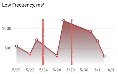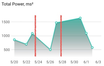 … Pour se focaliser maintenant sur les mesures de VFC (Variabilité de la Fréquence Cardiaque) que j’ai réalisées sur cette période de deux semaines et en donner du sens.