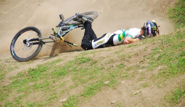 Je fais 300 mètres et là patatra … je m’étale de tout mon long sur une piste large et plate sans aucune difficulté. Je gueule, j’hurle, je saigne, j’ai mal, je m’en veux … mais qu’est que t’es *** ma parole !!!