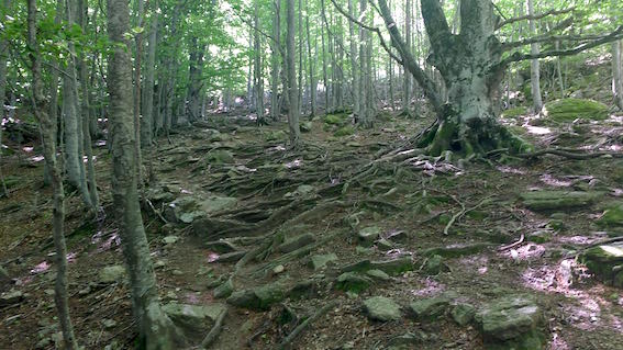 Mille pensées me traverse l’esprit dans cette montée tortueuse exposée en plein soleil. Les marches naturelles et les racines m’obligent à rester concentré et me permettent un instant d’arrêter de me projeter et de gamberger. J’arrive au refuge juste à temps.