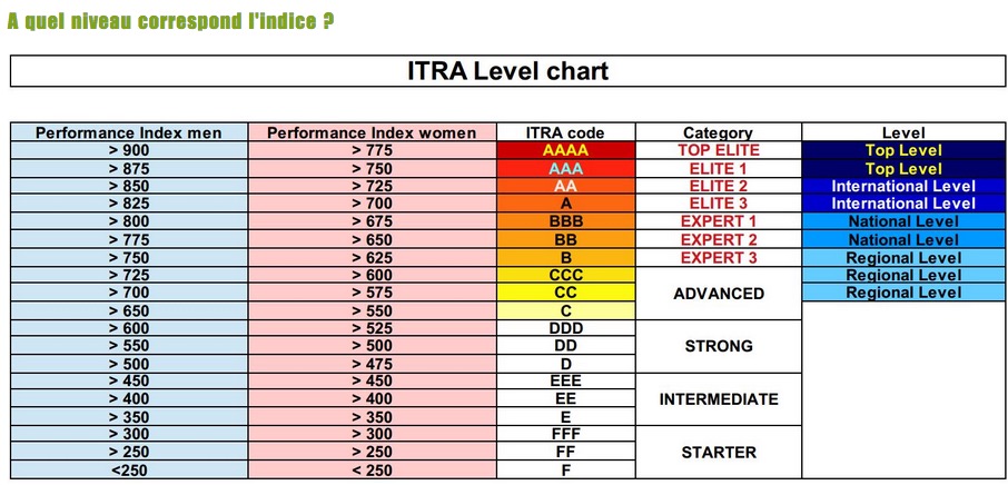 L’ITRA m’a attribué une côte de 490, ce qui me range dans la catégorie de « Intermediate« , autant dire loin de la tête de course :-) Allez plus que 10 points et j’aurai le droit à l’étiquette « Strong » qui en jette un peu plus