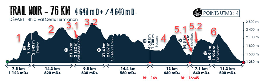 La montée 3 – franchissement du Pas de la Beccia, point culminant de la course – a été découpée en deux car les pentes moyennes sont très différentes entre l’approche et « l’assaut final ».