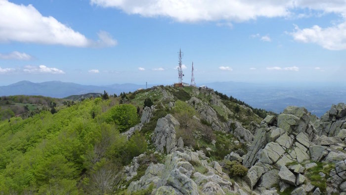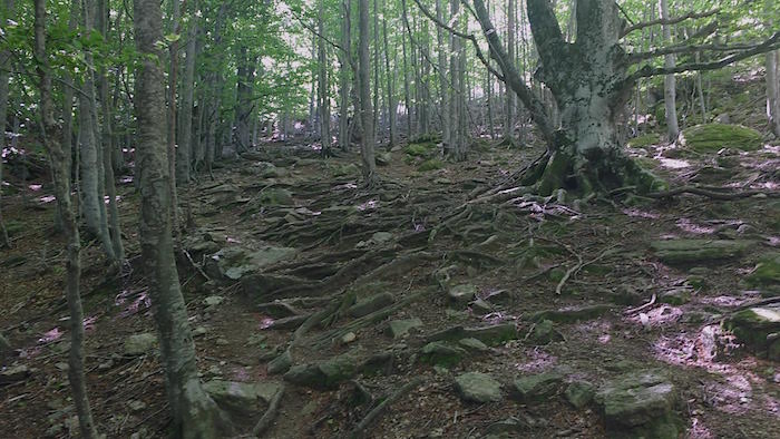 C’est parti pour une montée de 1000 mètres avec des rampes à plus de 30%. Je me sens prêt. Rapidement, je reprends tout ceux qui avaient fait un arrêt plus court que moi à Arles. Le différentiel de vitesse m’étonne et pourtant tous mes voyants sont au vert. Alors profite, Séb !! Certains essaient de s’accrocher mais abandonnent rapidement. C’est vraiment jouissif … quel contraste avec la veille !! La montée est très engagée et je décide de la faire d’une traite. Les trois cent derniers mètres de dénivelé tout droit en sous-bois à lutter avec les racines sont une torture mentale : la visibilité est tellement bonne qu’on aperçoit le sommet. C’est aussi l’endroit où les pentes sont les plus fortes. Ne pas regarder au-delà des dix prochains mètres, se concentrer sur son effort, respirer, sourire … et prendre conscience de la chance que j’ai d’être là au 110e kilomètre dans un tel état d’euphorie.