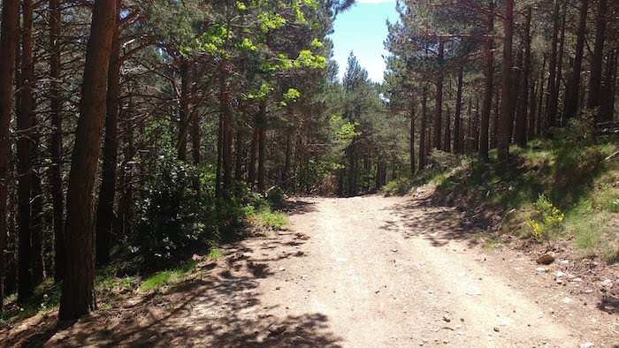 Les premières foulées sont une torture. J’ai vraiment mal partout. Les hanches sont bloquées, les genoux aussi. Je tente des pas minuscules et rasant en essayant de gainer au maximum et de respirer profondément. Et puis, je n’ai vu personne depuis près d’une heure. La lassitude reprend du terrain. Le doute s’installe. Je serre les dents et me concentre sur chacun de mes pas. Le ciment laisse place à une grande piste large et la pente s’adoucit peu à peu, me permettant d’adopter une foulée plus naturelle et moins traumatisante. La végétation change à vue d’œil, les pins se font de plus en plus présents et leur odeur puissante me donne du baume au cœur.
