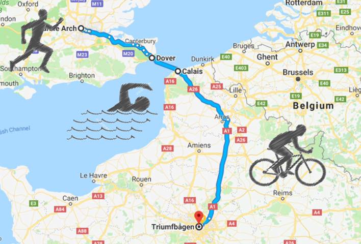 Le transfert est effectué jusqu’à Calais, d’où part un périple de 289,7 kilomètres à vélo jusqu’à l’Arc de Triomphe à Paris, d’où son surnom « Arch2Arc ». Il faut compter aussi avec les travaux et les embouteillages qui peuvent ajouter un peu de piment à l’aventure.