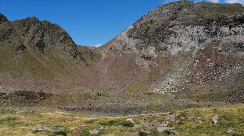 Le profil est globalement descendant mais ne vous y trompez pas. Il nous faudra passer le col de la Bonida (2320m) et le col d’Aoube (2370m), contourner le lac Bleu par un sentier aussi magnifique que âpre, enchainer par le très cassant col de Bareilles (2020m), puis la Hourquette d’Ouscouaou (1875m) dans des montagnes russes sèches et peu roulantes.