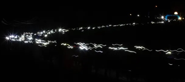 A intervalles réguliers, j’entends un claquement brutal de ferraille qui vient rompre la symphonie du vent balayant le versant. Ca vient du haut. La première luciole est très loin devant moi. Derrière, mes poursuivants se sont arrêtés. Je n’ai plus de repères. Entre féérie du spectacle et monotonie des longues lignes droites en biais, la lassitude m’envahit.