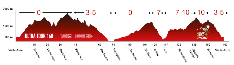 Si je devais tracer, le même profil pour le 100 miles, je mettrais des 0 partout. Quant au GRP Tour des cirques et ses 120 kilomètres parcourus en 2018, seule la partie Néouvielle retour mériterait une note entre 3 et 5.