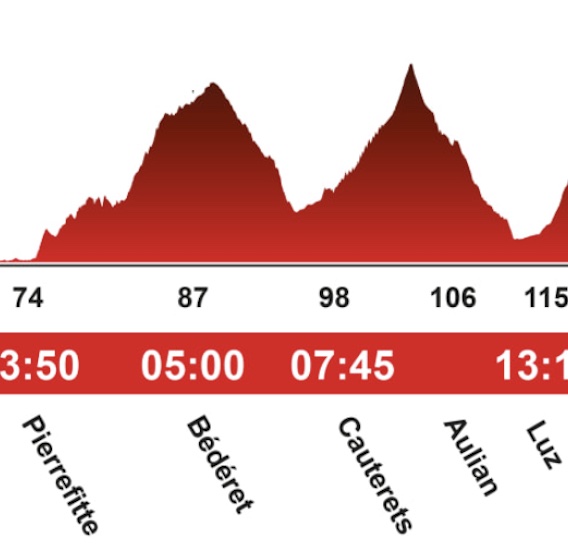 - Du 110e à l’arrivée, l’équilibre se déplace à 52%, voire 52,5% à droite en moyenne avec 2 zones de bérézina complète (mouchetages rouges vers le bas) : je vous le donne en mille… La descente de 2h du col de la Caperette à Luz-Saint-Sauveur et la traversée du Néouvielle retour, avec des pics à 60% à droite.
