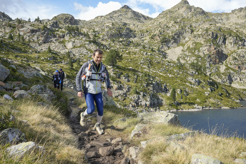 Puis au détour d’une circonvolution du chemin au hasard des reliefs tourmentés du Néouvielle, le vent tombe. Juste le temps de prendre conscience qu’il fait chaud et que le soleil commence à taper. Je suis clairement trop couvert avec ma polaire et ma veste de pluie. Autour de moi, les autres s’arrêtent pour enlever quelques couches. D’autres se contorsionnent tout en maintenant leur rythme. Je tarde à les imiter jusqu’à ce qu’une nouvelle rafale surgisse de nul part et nous saisisse sur place.
