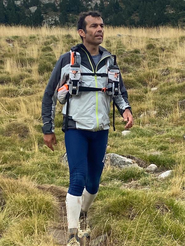 Aux abords de Soulan, j’aperçois Erik Clavery à l’abri sous les arbres. Je m’arrête et tente d’entrer en communication avec lui. La scène est cocasse : il n’arrive pas à me reconnaître. Il faut dire que j’ai à peine forme humaine et que les intempéries n’arrangent rien. Sa femme est partie chercher un ami en perdition sur le plateau. Bon courage à elle !