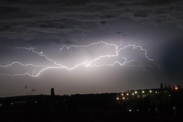 Je n’ai quasiment pas utilisé ma frontale dans cette montée, et pas seulement parce que j’étais bien encadré par des phares de camion. Aussi parce que le ciel n’augurait rien de bon. Il suffisait de lever la tête pour profiter d’un spectacle son et lumière. L’autre n’avait pas dit qu’il n’y aurait pas d’orage ? Je ne m’inquiète pas plus que ça. Ça a l’air haut dans le ciel et décalé vers le sud. On devrait passer à côté.