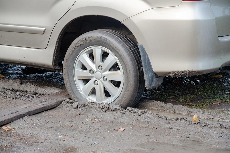 Quand je me présente à mon tour, la solution de prise d’élan que j’avais imaginée est moins évidente. L’espace pour tourner après le passage est étroit et les piétons affluent sans se soucier de ma présence (normal, chacun s’est replié sur soi avec ce temps). Il va falloir jouer serré. Je vise une fenêtre d’une dizaine de seconde, pars en 2e avec un angle d’attaque de 45 degrés. L’une des roues avant passe mais pas l’autre qui se met à patiner à une encablure de l’asphalte. J’insiste, la voiture se met en travers mais finit par s’extraire de ce guêpier.