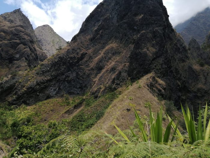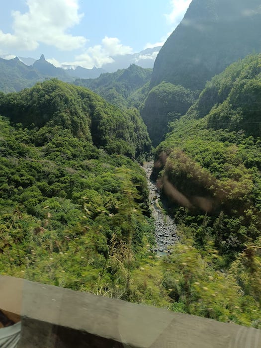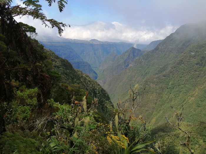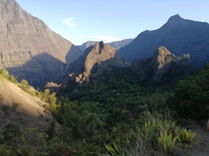 Des beaux paysages de Mafate en descendant de La Brèche