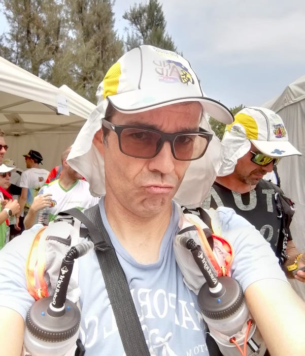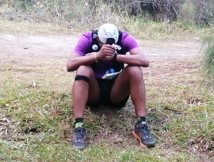 [09:23, 20/10/2023] 11h30…Enfin à Cilaos devant le ravito… Toujours même musique 😜