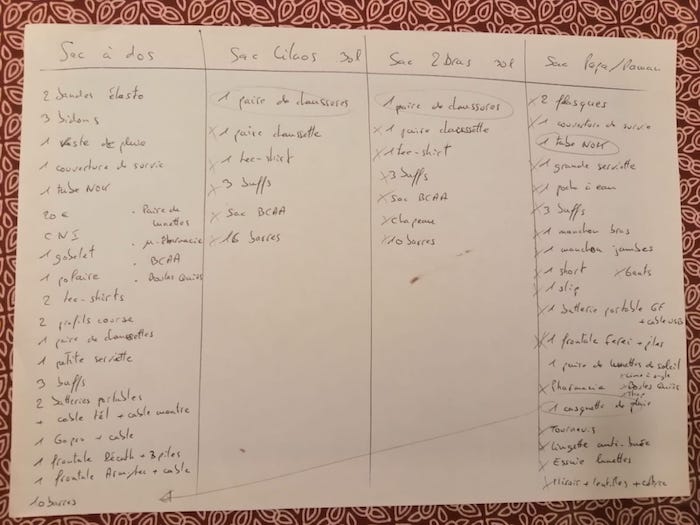 [08:46, 16/10/2023] Hier soir, c’était prise de tête sur la répartition du matériel dans les sacs et la stratégie d’assistance. Je voyais mes parents se prendre la tête dans les mains pendant que je tentais une explication un peu bancale de ce que j’imaginais 😁 Au bout d’1h30, tous les objets ont trouvé place dans un sac. Alléluia !!