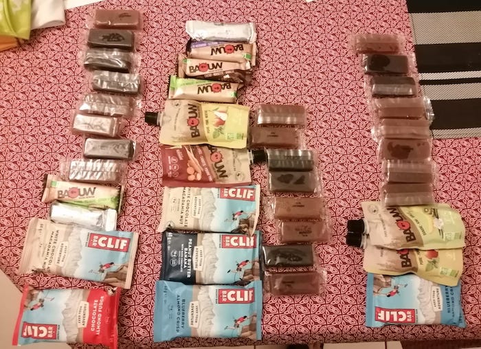[08:49, 16/10/2023] Pour la stratégie d’alimentation, ça donne ça (bin oui, ça va avec, hin !). Il manque juste les 5 citrons. Le tout, en plus des repas sur les ravitos. Là, comme ça, ça fait pas très envie, mais sur le moment, ça devrait me faire du bien 😁