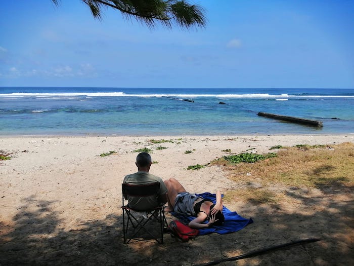 [08:30, 18/10/2023] 32 degrés, on transpire sans rien faire. Heureusement l’océan à côté apporte un peu d’air…