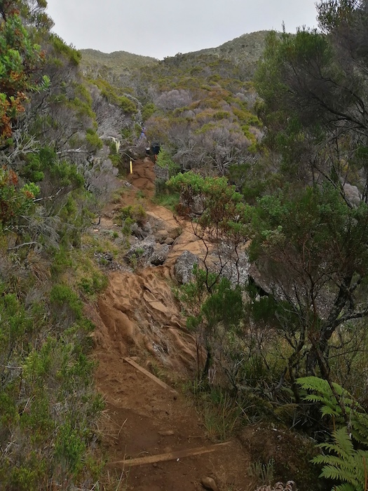 • La souche marquant l’entrée dans Mafate sur le sentier Scout :