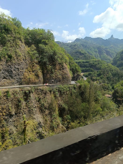 [07:46, 20/10/2023] Nous sommes dans le bus de Cilaos de 9h30… Là aussi du monde et de la chaleur…