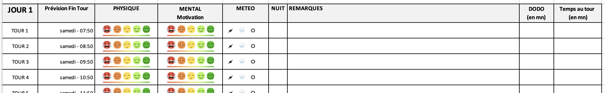 Pour ça, il peut prévoir un tableau avec ce qu’il prévoit de faire pendant ses 10′ de pause, tour après tour.